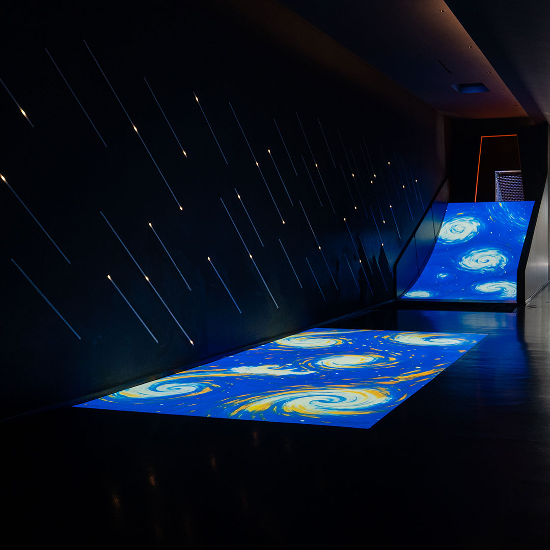 Every step reveals Van Gogh’s sky tones and sunflowers, creating fleeting images that exist only in the moment — alive, bright and full of wonder.